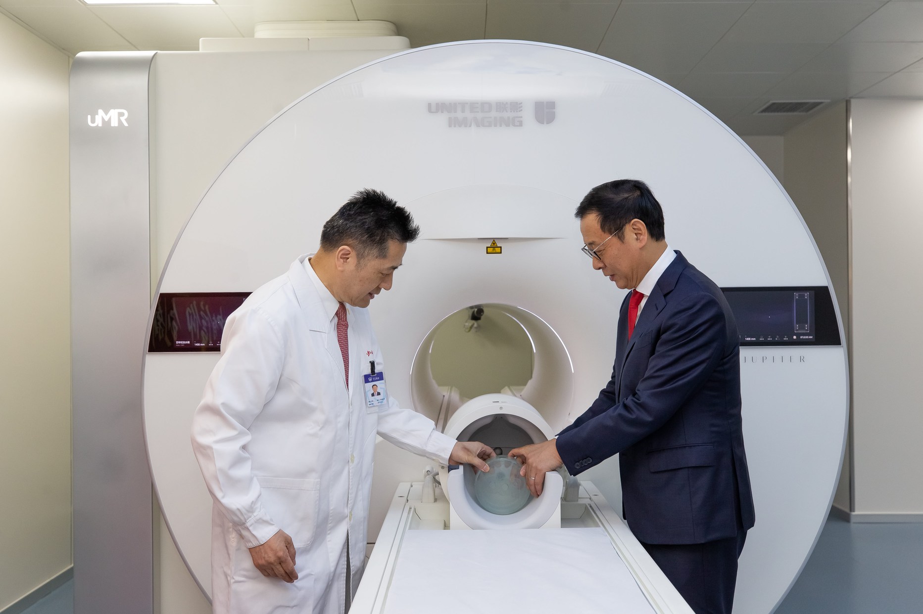 2021年7月,中国科学院院士、复旦大学附属中山医院院长樊嘉与联影集团董事长薛敏共同见证5T全球首台开机的历史时刻